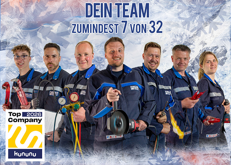 Wir sind ein Team von 32 tatkräftigen Männern und Frauen, die Tag täglich im Auftrag unserer Kunden spannende Herausforderungen im Bereich Kälte-, Klima- und Lüftungstechnik zu meistern haben. Wir können mit Stolz behaupten, dass wir gemeinsam bisher jede Aufgabe lösen konnten!